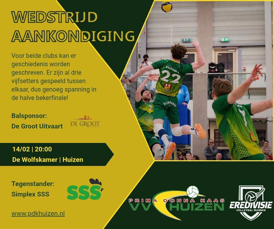 Door de winst van afgelopen dinsdag is Prima Donna Kaas Huizen drie sets verwijderd van de bekerfinale. Winst (3-0, 3-1 en 3-2) betekent sowieso doorgang naar de eindstrijd in Sporthal De Maaspoort. Bij 2-3 verlies spelen we een allesbeslissende Golden Set. De drie wedstrijden tussen PDK en SSS van dit seizoen zijn allemaal geëindigd in vijfsetters, het laat zien hoe de teams aan elkaar gewaagd zijn. In misschien wel de spannendste wedstrijd ooit van de club kunnen we alle support gebruiken! We zien jou toch ook? Ga naar www.pdkhuizen.nl/tickets om jouw kaartje te scoren!
